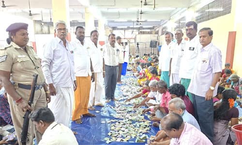 மேல்மலையனுார் அங்காளம்மன் கோவிலில் உண்டியல் திறந்து காணிக்கை எண்ணும் பணி நேற்று முன்தினம் நடந்தது. இந்து சமய அறநிலையத் துறை உதவி ஆணையர்கள் மேல்மலையனுார் சக்திவேல், கள்ளக்குறிச்சி ரமேஷ், அறங்காவலர் குழுத் தலைவர் ஏழுமலை ஆகியோர் முன்னிலை வகித்தனர். சேவார்த்திகள் உண்டியல் என்னும் பணியில் ஈடுபட்டனர். இதில் பக்தர்கள், 66 லட்சத்து 97 ஆயிரத்து 356 ரூபாய் ரொக்கமும், 77 கிராம் தங்கமும், 730 கிராம் வெள்ளியும் காணிக்கையாக செலுத்தி இருந்தனர். அறங்காவலர்கள் சுரேஷ், மதியழகன், பச்சையப்பன், சரவணன், வடிவேல், சந்தானம், இந்து சமய அறநிலையத்துறை ஆய்வாளர் சங்கீதா, மேலாளர் சதீஷ், கணக்காளர் மணி மற்றும் கோவில் ஊழியர்கள் உடனிருந்தனர்.