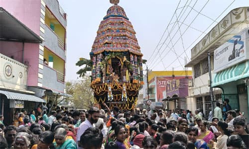 திருக்கோவிலுார், கீழையூர், வீரட்டானேஸ்வரர் கோவில் மாசி மக பெருவிழா, கடந்த 21ம் தேதி கொடியேற்றத்துடன் துவங்கியது. விழாவின் முக்கிய நிகழ்ச்சியான தேரோட்டம் இன்று நடந்தது. அதிகாலை 5:00 மணிக்கு மூலவர், உற்சவமூர்த்திகளுக்கு சிறப்பு அபிஷேகம், அலங்காரம், யாகசாலை பூஜைகள் நடந்தது. காலை 10:00 மணிக்கு சிவானந்தவல்லி சமேத வீரட்டானேஸ்வரர் அலங்கரிக்கப்பட்ட தேரில் எழுந்தருளினார். சிறப்பு பூஜைகளுக்கு பிறகு நமச்சிவாய கோஷம் முழங்க திரளான பக்தர்கள் தேரை வடம் பிடித்து, முக்கிய வீதிகள் வழியாக இழுத்துச் சென்றனர். முதலில் விநாயகர், இரண்டாவது வள்ளி தேவசேனா சமேத முருகர், நான்காவதாக அம்பாள், ஐந்தாவது சண்டிகேஸ்வரர் என நான்கு தேர்களுக்கு மத்தியில் சிவானந்தவல்லி சமேத வீரட்டானேஸ்வரர் எழுந்தருளிய பெரிய தேர் அசைந்தாடி பக்தர்கள் வெள்ளத்தில் சென்றது. மாலை 4:00 மணிக்கு தேர் நிலையை அடைந்தது. ஏற்பாடுகளை ஹிந்து சமய அறநிலையத்துறை செய்திருந்தது. விழாவில் திரளான பக்தர்கள் கலந்து கொண்டனர்.