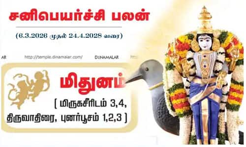 மிருகசீரிடம்: உழைப்பு உயர்வுதரும் தைரிய வீரிய காரகனான செவ்வாயின் நட்சத்திரத்தில் நீங்கள் பிறந்திருந்தாலும் 1,2ம் பாதமான ரிஷபத்தில் பிறந்தவர்களுக்கு சுக்கிரன் ராசி நாதனாகவும், 3,4ம் பாதமான மிதுனத்தில் பிறந்தவர்களுக்கு புதன் ராசிநாதனாகவும் உள்ளனர். உங்கள் நட்சத்திராதிபதி செவ்வாய்க்கு சனி பகைவர் என்றாலும் அவர் சஞ்சரிக்கும் இடத்திற்குரிய பலன்களை வழங்கக் கூடியவராகிறார். மிருகசீரிடம் 1,2ம் பாதத்தினருக்கு சனி பகவான் லாப ஸ்தானத்திலும், 3,4ம் பாதத்தினருக்கு ஜீவன ஸ்தானத்திலும் சஞ்சரிக்கிறார். இதனால் 1,2ம் பாதங்களில் பிறந்தவர்களுக்கு சனி பகவான் லாபத்தையும், யோகத்தையும், முன்னேற்றத்தையும் உண்டாக்குவார். 3,4ம் பாதத்தினருக்கு செய்துவரும் தொழில், பார்த்துவரும் உத்தியோகத்தில் உழைப்பையும், நெருக்கடிகளையும், போராட்டங்களையும் அதிகரித்திடுவார். ஆனால், இக்காலத்தில் மற்ற கிரகங்களின் சஞ்சார நிலைகள், சுய ஜாதகத்தில் கிரகங்கள் அமர்ந்த நிலை, திசா புத்திக்கேற்ப இப்பலன்களில் ஒவ்வொருவருக்கும் சில மாற்றம் ஏற்படும். பலன்களில் மாற்றம் சனி பகவான் 2026 - மார்ச். 13, 2026 - ஏப். 11, 2026 வரை அஸ்தமனம், ஜூலை. 15, 2026 - நவ. 30, 2026 வரை வக்கிரம், மார்ச். 25, 2027 - ஏப். 24, 2027 வரை அஸ்தமனம், ஜூலை. 28, 2027 - டிச. 13, 2027 வரை வக்கிரம் என்ற நிலைக்கு செல்வதால், மிருகசீரிடம் 1,2ம் பாதத்தினருக்கு இக்காலத்தில் லாப சனியின் பார்வைகளால் ஏற்படும் சங்கடப் பலன்கள் இருந்த இடம் தெரியாமல் போகும். உடல்நிலையில் ஏற்பட்ட பாதிப்பு விலகும். மறைமுகத்தொல்லைகள் நீங்கும். செல்வாக்கும் அந்தஸ்தும் உயரும். 3,4ம் பாதத்தினருக்கு இக்காலத்தில் ஜீவன சனியால் ஏற்படும் சங்கடப் பலன்கள் விலகும். வியாபாரம் தொழில் முன்னேற்றமடையும். பணவரவு அதிகரிக்கும். குடும்பத்தில் நிம்மதி இருக்கும். ராகு - கேது சஞ்சாரம் மிருகசீரிடம் 1,2ம் பாதத்தினருக்கு நவ.13, 2026 முதல் ராகு பாக்ய ஸ்தானத்திலும், கேது சகாய ஸ்தானத்திலும் சஞ்சரித்து யோகப் பலன்களை அதிகரிப்பர். பணவரவை உண்டாக்குவர். தைரியத்தையும் தன்னம்பிக்கையையும் ஏற்படுத்துவர். 3,4 ம் பாதத்தினருக்கு நவ.13, 2026 வரை ராகு பாக்ய ஸ்தானத்திலும் கேது சகாய ஸ்தானத்திலும் சஞ்சரிப்பதால் எடுத்த வேலைகள் வெற்றியாகும். நினைத்த காரியங்கள் நடந்தேறும். எதிர்பார்த்த முன்னேற்றம் உண்டாக்கும். குரு சஞ்சாரம் குரு பகவான் மே.26, 2026 வரை மிதுனத்திலும், மே.26, 2026 - அக்.20 வரை கடகத்திலும், அக்.20, 2026 - பிப்.13, 2027 வரை சிம்மத்திலும், பிப்.13, 2027 - ஜூன்.13, 2027 வரை கடகத்திலும், ஜூன்.13, 2027 - நவ.16, 2027 வரை சிம்மத்திலும், நவ.16, 2027 - ஏப்.17, 2028 வரை கன்னியிலும் சஞ்சரிக்கிறார். இந்த சஞ்சார நிலைகள் காரணமாக 1,2ம் பாதத்தினருக்கு, மிதுனத்தில் சஞ்சரிக்கும் காலத்தில் வரு