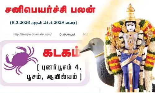 சனி பகவான் 2026 - மார்ச். 13, 2026 - ஏப். 11, 2026 வரை அஸ்தமனம், ஜூலை. 15, 2026 - நவ. 30, 2026 வரை வக்கிரம், மார்ச். 25, 2027 - ஏப். 24, 2027 வரை அஸ்தமனம், ஜூலை. 28, 2027 - டிச. 13, 2027 வரை வக்கிரம் என்ற நிலைக்கு செல்வதால், புனர்பூசம் 1,2,3 ம் பாதத்தினருக்கு இக்காலத்தில் ஜீவன சனியால் ஏற்படும் சங்கடப் பலன்கள் விலகும். வியாபாரம், தொழில் முன்னேற்றமடையும். உத்தியோகத்தில் எதிர்பார்த்த இடமாற்றம் பதவி உயர்வு கிடைக்கும். மறைமுகத் தொல்லைகள், நோய் நொடிகள் நீங்கும். செல்வாக்கும் அந்தஸ்தும் உயரும். 4ம் பாதத்தினருக்கு இக்காலத்தில் பாக்ய சனியின் பார்வைகளால் ஏற்படும் பாதிப்புகள் விலகும். வருமானம் உயரும். வசதி வாய்ப்புகள் அதிகரிக்கும்.