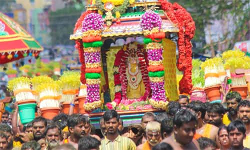 மஞ்சள் நீராடி நகர்வலம் வந்த நத்தம் மாரியம்மன்: திரளான பக்தர்கள் தரிசனம்