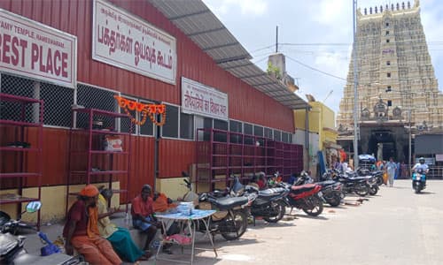 ராமேஸ்வரம் ராமநாதசுவாமி கோயிலுக்கு தினமும் ஏராளமான பக்தர்கள் வருகின்றனர். இக்கோயில் ரதவீதியில் பக்தர்களுக்கு ஓய்வு கூடம் இல்லாததால், தனியார் விடுதியில் கூடுதல் செலவீனத்துடன் தங்கிச் செல்லும் அவலம் ஏற்பட்டது. இந்நிலையில் சமீபத்தில் கோயில் கிழக்கு கோபுரம் எதிரே சன்னதி தெருவில் ஓய்வு கூடம் மற்றும் காலணிகள் வைக்கும் ஸ்டான்ட் அமைத்து பக்தர்கள் பயன்பாட்டிற்கு வந்தது. ஆனால் ஓய்வு கூடம் முன்பு அப்பகுதியில் உள்ள வியாபாரிகள் டூவீலர்களை நிறுத்தியும், பிச்சைக்காரர்கள் அமர்ந்து ஆக்கிரமித்து உள்ளனர். இதனால் பக்தர்கள் ஓய்வு கூடத்திற்குள் சென்று வர, காலணிகளை வைக்க பெரிதும் அவதிப்படுகின்றனர். சில சமயம் ஆக்கிரமிப்பு டூவீலர்களுக்குள் பக்தர்கள் சிக்கி காயமடைந்தும், பிச்சைக்காரர்களுடன் வாக்குவாதம் ஏற்படுகிறது. இந்த ஆக்கிரமிப்பு டூவீலர்கள், பிச்சைக்காரர்களை அப்புறப்படுத்த ஹிந்து அமைப்பினர் பலமுறை கோரிக்கை விடுத்தும், அதிகாரிகள் கண்டு கொள்ளவில்லை. எனவே ஓய்வு கூடம் முன்புள்ள ஆக்கிரமிப்புகளை அகற்ற மாவட்ட நிர்வாகம் நடவடிக்கை எடுக்க வேண்டும்.