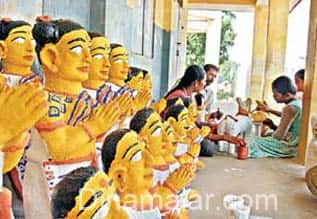 இது குறித்து, பழனியப்பன், தட்சிணாமூர்த்தி கூறியதாவது: உருவச்சிலை செய்யும் தொழிலை, பாரம்பரியமாக செய்து வருகிறோம். அவல்பூந்துறை குளத்தில் இருந்து, களிமண் வாங்கி வருகிறோம். சமீபகாலமாக, தமிழகத்தில், குடும்ப பிரச்னை அதிகரித்துள்ளது. கணவனுக்காக மனைவியும், மனைவிக்காக கணவனும், கோவிலில் வேண்டி நேர்த்திக்கடன் செலுத்துகின்றனர். கணவன்களுக்காக உத்தமபத்தினி உருவமும், மனைவிகளுக்காக, உத்தமபுத்திரன் சிலையும் செய்து தருகிறோம். இவ்விரு சிலையும், அளவுக்கு தகுந்தாற்போல், 1,500 ரூபாய் முதல், 3,000 ரூபாய்க்கு, விற்பனை செய்கிறோம். இச்சிலையை கோவிலில், நேர்த்திக்கடனாக செலுத்தி வழிபட்டால், குடும்பத்தில் இணக்கம் ஏற்படும்.