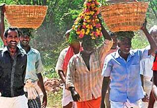 கழுத்து அறுத்து காவு: நேற்றுமுன்தினம் ஞாயிற்றுக்கிழமை என்பதால், காலை, 11:00 மணிக்கு, பன்றி, ஆடு, சேவல் ஆகியவற்றை வாங்கி வந்து, அவற்றின் மீது மஞ்சள் நீர் தெளித்து, நெற்றியில் திலகமிட்டு, கழுத்தில் மாலை அணிவித்து, கிராமத்தின் நுழைவு வாயிலுக்கு அழைத்து சென்றனர். அங்கு நூற்றுக்கும் மேற்பட்டோர் திரண்டு, பொரிகடலை, ஐந்து வண்ணத்தில் சோறு, கருப்பு, சிவப்பு நிற கயிறுகள், ஆகியவற்றை வைத்து படையலிட்டனர். பகல், 12:00 மணிக்கு, பன்றி, ஆடு, கோழி ஆகிவற்றை பலியிட்டனர்.தலைகளுடன் ஊர்வலம் அதன்பின் பலியிடப்பட்ட, பன்றி, ஆடு, கோழி, ஆகியவற்றின் தலைகளை கூடைகளில் வைத்து, கிராமத்தின் மூன்று திசைகளுக்கும் கொண்டு சென்று, எல்லையில் கற்பூரம் ஏற்றினர். வழி எங்கும் கோவிந்தா, கோவிந்தா, என முழுக்கமிட்டபடி சென்றனர். இறுதியாக கிராமத்தின் கிழக்குப் பகுதி எல்லைக்கு சென்று, தலைகளை வைத்துவிட்டு திரும்பினர். இவ்வாறு செய்தால் கால்நடைகளுக்கு நோய் வராது என்பது, அப்பகுதி மக்களின் நம்பிக்கையாக உள்ளது.