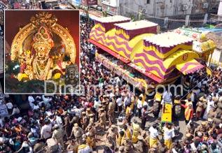 கோட்டை மாரியம்மன் பூச்சொரிதல்: தெருக்கள் தோறும் பூக்கோலம்!