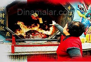 இந்த தண்டனையிலிருந்து தப்ப வேண்டுமானால், மரண கடவுளுக்கு, பணமும், பொருளும் கொடுக்க வேண்டும். பாதாள உலகத்தில் ஏது, பணமும், பொருளும்? இதனால், இறந்தவர்களின் உறவினர்கள், ஒரு குறிப்பிட்ட நாளில், தீயை மூட்டி, அதற்குள் கட்டுக் கட்டாக ரூபாய் நோட்டுகளையும், பொருட்களையும் வீசி எறிகின்றனர். இப்படி, தீக்குள் வீசி எறியப்படும் ரூபாய் நோட்டுகளும், பொருட்களும், பாதாள உலகத்தில் உள்ள, ஆவிகளுக்கு போய் சேரும் என்றும், ஆவிகள், அந்த பணத்தை, மரணக் கடவுளுக்கு கொடுத்து, தண்டனையிலிருந்து தப்பிக்கும் என்றும், சீன மக்களில் ஒரு தரப்பினர் நம்புகின்றனர். மற்றொரு தரப்பினரோ, "வாங்கிய கடனை அடைக்க முடியாமல், இறந்தவர்களுக்கு, பாதாள உலகத்தில், கட்டாயம் தண்டனை உண்டு. இந்த கடனை அடைப்பதற்காகவே, இறந்தவர்களுக்காக, தீக்குள், ரூபாய் நோட்டுகளையும், பொருட்களையும் வீசுகிறோம்... என்கின்றனர். சீனாவின் பல பகுதிகளிலும், இந்த விசித்திர நடைமுறை பின்பற்றப்படுகிறது. துவக்கத்தில், உண்மையான ரூபாய் நோட்டுகளையும், பொருட்களையும், தீக்குள் வீசி எறிந்த சீன மக்கள், இப்போது, ரூபாய் நோட்டு போல அச்சிடப்பட்ட காகிதங்களையும், போலியாக செய்யப்பட்ட பொருட்களையும் வீசி எறியத் துவங்கியுள்ளனர். இறந்த முன்னோரின் ஆவிகளை, சாந்தப்படுத்தி, சந்தோஷமாக வைத்திருந்தால் தான், நாம் சந்தோஷமாக வாழ முடியும். இதனால் தான், கடுமையான விமர்சனங்கள் எழுந்தாலும், இந்த நடைமுறையை பின்பற்றி வருகிறோம்... என்கின்றனர், சீன மக்கள்.
