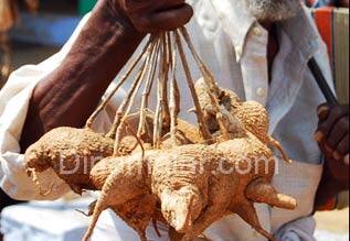 ஈரோடு: ஈரோட்டில் பில்லி சூனியம், திருஷ்டியை தடுக்கும் ஆகாய கருடன் கிழங்கு விற்பனை ஜோராக நடக்கிறது. ஈரோடு கருங்கல்பாளையம் பகுதியில், 60 வயதான முதியவர் ஒருவர் கையில், சிறிய கூர்மையான கம்பியுடன், கைகளில் வித்தியாசமான கிழங்குகளை வைத்துக்கு கடைகளில் தோறும் விற்பனை செய்து கொண்டிருந்தார்.சலூன் கடைகள் முதல், ஹோட்டல்கள் நடத்துபவர்கள் வரை, ஆர்வமுடன் அந்த பெரியவரிடம் கிழங்கினை காசு கொடுத்து வாங்கி, கடையின் முன் பகுதியில் கட்டித் தொங்க விட்டனர்.
