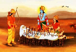 சுத்த வீரனுடன்தான் போர் புரிவேன் என்ற கொள்கையுடைய பீஷ்மரின் முன்வந்து பீஷ்மருக்கு சவால்விட்டான். ஆணுமில்லாமல் பெண்ணுமில்லாமல் காட்சி தந்த சிகண்டியுடன் போர்புரிய விருப்பமில்லாத பீஷ்மர் தயங்கினார். அர்ச்சுனன் பிஷ்மர்மீது அம்பு எய்வதற்குமுன், சிகண்டி பீஷ்மர்மீது அம்பு எய்தான். அர்ச்சுனன் சிகண்டியை முன்நிறுத்தி போர் புரிகிறான் என்பதை அறிந்த பீஷ்மர், சிகண்டி எய்த அம்பினை இடது கையால் பிடித்து முறித்து எறிந்தார். அப்போது அர்ச்சுனன் பீஷ்மர்மீது சரமாரியாக அம்புகளை எய்தான். அந்த அம்புகளால் துளைக்கப்பட்ட பீஷ்மர் கீழே சாய்ந்தார். ஆனால் பூமியில் விழாமல், அந்த அம்புகள் படுக்கையாக பூமியில் பதிந்து பீஷ்மரைத் தாங்கின ஆனால் உயிர் பிரியவில்லை. தான் விரும்பிய நேரத்தில் முக்தியடையலாம் என்ற வரத்தின்படி உத்ராயனப் புண்ணிய காலத்திற்காகக் காத்திருந்தார் பீஷ்மர் உத்ராயன காலமும் வந்தது. ஆனால் பீஷ்மரின் உயிர் அவர் விரும்பியதுபோல பிரியாததால் அவஸ்தைக்குள்ளானார். காரணம் என்ன என்று புரியாமல் தவித்துக்கொண்டிருந்தார். உத்ராயன காலத்தில் உயிர் பிரிந்தால் எந்தத் தடையுமின்றி சொர்க்கம் போகலாம் என்பது சாஸ்திரம் சொல்லும் விதியாகும்.