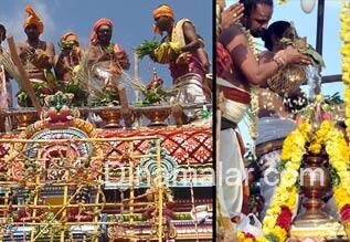ராமநாதபுரம்: ராமநாதபுரம், குண்டுக்கரை சுவாமிநாத சுவாமி கோயிலில் நேற்று கும்பிஷேகம் நடந்தது. மார்ச் 26ம் தேதி காலை 7 மணிக்கு, அனுக்கை பூஜையுடன் கும்பாபிஷேகத்திற்கான சிறப்பு பூஜைகள் துவங்கின. நேற்று காலை 4 மணிக்கு ஆறாம் கால யாகபூஜை முடிந்து, 6 மணிக்கு மேல் கடம் புறப்பாடு நடந்தது. வேத விற்பன்னர்கள் மந்திரங்கள் முழங்க, காலை 7.25க்கு கலசங்களில் புனித நீர் ஊற்றப்பட்டு, கும்பாபிஷேகம் நடந்தது. ஏராளமான பக்தர்கள் கண்டுகளித்தனர். பின், மூலவருக்கு மகா அபிஷேகம், தீபாராதனை நடந்தது. மாலை 5.30 மணிக்கு சுவாமி திருக்கல்யாணம் நடந்தது. இரவு 8 மணிக்கு மேல் சுவாமி திருவீதி உலா நடந்தது. திருவாடானை: திருவாடானை அருகே திருவெற்றியூரில் பாகம்பிரியாள் கோயிலில் நேற்று கும்பாபிஷேகம் நடந்தது. முன்னதாக அனுக்ஞை, விக்னேஸ்வரபூஜை, திசாஹோமம், சாந்திஹோமம், யாகபூஜைகள், பூர்ணாகுதி நடந்தது. நேற்று காலை 10 மணிக்கு, கருடபகவான் வானில் வட்டமிட, சிவாச்சாரியார் வேதமந்திரங்கள் முழங்க. கும்பங்களில் புனித நீர் ஊற்றபட்டது. பாகம்பிரியாள் தாயார், வல்மீகநாதசுவாமிக்கு சிறப்பு ஆராதனைகள் நடந்தது. இரவு 7 மணிக்கு திருக்கல்யாணம், 8 மணிக்கு பஞ்சமூர்த்தி வீதி உலா நடந்தது. தேவஸ்தான கண்காணிப்பாளர் மாரிமுத்து, ஜெ., பேரவை மாவட்ட இணை செயலாளர் கணேசன், தொண்டி சரவணா நகைக்கடை உரிமையாளர் சரவணன், பாகம்பிரியாள் பைனானஸ் உரிமையாளர் ராஜேந்திரன், ஊராட்சி செயலர் சக்கரைஅழகு, விநாயகா மோட்டார் உரிமையாளர் ரமேஷ் உட்பட ஏராளமான பொதுமக்கள் பங்கேற்றனர்.
