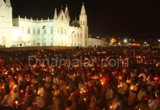நாகப்பட்டினம்: நாகை அடுத்த வேளாங்கண்ணி ஆரோக்கிய மாதா தேவாலயத்தில், நேற்று முன்தினம் நள்ளிரவு நடந்த, ஈஸ்டர் பண்டிகை சிறப்பு நிகழ்ச்சியில், பல்லாயிரக்கணக்கான பக்தர்கள், கைகளில் மெழுகுவர்த்தி ஏந்தி, பங்கேற்றனர்.புனித வெள்ளியன்று சிலுவையில் அறையப்பட்டு இறந்த ஏசு கிறிஸ்து, மூன்றாம் நாள் உயிர்த்தெழுந்த நிகழ்ச்சி, ஈஸ்டர் பண்டிகையாக கொண்டாடப்படுகிறது. இதை முன்னிட்டு, சிறப்பு கூட்டு பாடல் திருப்பலி, நாகை அடுத்த வேளாங்கண்ணி ஆரோக்கிய மாதா தேவாலயத்தில் நடந்தது. நேற்று முன் தினம் இரவு, 10: 00 மணிக்கு, தேவாலய அதிபர் மைக்கேல் உள்ளிட்ட, 10 பாதிரியார்கள் பங்கேற்ற சிறப்பு பாடல் திருப்பலி, தேவாலய கலையரங்கில் துவங்கியது. இரவு, 12:00 மணிக்கு, உயிர்த்தெழுந்த ஏசு கிறிஸ்து, பக்தர்களுக்கு காட்சி தரும் நிகழ்ச்சி, தத்ரூபமாக நடத்தி காட்டப்பட்டது. நள்ளிரவு, 1:45 மணி வரை, நடந்த சிறப்பு திருப்பலியில், பல்லாயிரக்கணக்கான பக்தர்கள், கைகளில், மெழுகுவர்த்தி ஏந்தி, பங்கேற்றனர்.தொடர்ந்து, நேற்று காலை, 6:30 மணி முதல், மாலை, 6:00 மணி வரை, தமிழ், மலையாளம், கொங்கணி, தெலுங்கு, இந்தி, ஆங்கிலம் ஆகிய மொழிகளில் தேவாலயத்தில், திருப்பலிகள் நடைபெற்றன. மாலை, 6:45 மணிக்கு நடந்த, உயிர்த்த ஏசு கிறிஸ்து, தேர்பவனியில், திரளான பக்தர்கள் கலந்து கொண்டனர்.