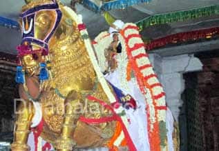 காஞ்சிபுரம்: வரதராஜ பெருமாள் குதிரை வாகனத்தில் எழுந்தருளி, வீதியுலா வந்து பக்தர்களுக்கு காட்சியளித்தார். காஞ்சிபுரம் வரதராஜ பெருமாள் கோவிலில், வைகாசி பிரம்மோற்சவம் நடந்து வருகிறது. வரதராஜ பெருமாள் தினமும் காலை, மாலை என, பல்வேறு விசேஷ வாகனங்களில் எழுந்தருளி பக்தர்களுக்கு காட்சியளித்து வருகிறார். 14ம் நாள் உற்சவமான தேரோட்டம் நடந்தது. தேரில் வரதராஜ பெருமாள் மற்றும் ஸ்ரீதேவி, பூதேவியருடன் வந்தார்.எட்டாம் நாள் உற்சவமான நேற்று முன்தினம், மாலை 6:00 குதிரை வாகனத்தில் வரதராஜ பெருமாள் எழுந்தருளினார். முக்கிய வீதிகள் வழியாக சென்று இரவு 9:00 மணிக்கு மீண்டும் கோவிலை வந்தடைந்தார். பக்தர்கள் பக்தி பரவசத்துடன் சுவாமியை வழிபட்டனர்.நேற்று காலை 10:00 மணிக்கு கோவில் வளாகத்தில் உள்ள அனந்தசரஸ் புஷ்கரணியில் தீர்த்தவாரி உற்சவம் நடந்தது. இரவு புண்ணியகோடி விமான உற்சவம் நடந்தது. இன்று (31ம் தேதி) பகல் 2:30 மணிக்கு த்வாதசாரதனம் உற்சவமும், இரவு 7:00 மணிக்கு வெட்டிவேர் சப்பரம் உற்சவமும் நடைபெறுகின்றன.