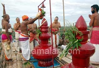 ஸ்ரீவைகுண்டம்: நவதிருப்பதிகளில் பிரதம திருப்பதியான ஆழ்வார்திருநகரி ஆதிநாதர் கோயிலில் அஷ்டபந்தன மகா கும்பாபிஷேகம் கோலாகலமாக நடந்தது. நவதிருப்பதிகளில் பிரதம திருப்பதியான ஆழ்வார்திருநகரி ஆதிநாதர் கோயில் அஷ்டபந்தன மகா கும்பாபிஷேக விழா கடந்த மாதம் 30ம் தேதிமாலை அலங்கார திருமஞ்சணத்தோடு துவங்கியது. தொடர்ந்து இரவு யஜமானவரணம், ஆசார்யவரணம், அனுக்ஜை, விஷ்வக்சேன ஆராதனம், புண்யாக வாசனம், பஞ்சகவ்ய சம்மேளனம், ரக்ஷாபந்தனம், மிருதீசங்கரஹனம், யாகசாலை ஆவாகானம், சுவாமிகள், யாகசாலை கூட்டத்திற்கு எழுந்தருளல் நடந்தது.தொடர்ந்து காலை, மாலை யாகசாலை பூர்ணாகுதி, வேதபாராயணம் கோஷ்டி நடந்தது. கும்பாபிஷேகத்தை முன்னிட்டு நேற்று காலை 4 மணிக்கு விஸ்வரூபதரிசனத்துடன் யாகசாலை துவங்கியது. 5 மணிக்கு மகா பூர்ணாகுதி, 6 மணிக்கு யாகசாலையில் இருந்து கடங்கள் புறப்பாடு நடந்தது. காலை 6.21 மணிக்கு மகா கும்பாபிஷேகம் நடந்தது. 6.30 மணிக்கு தீபாராதனை நடந்தது. காலை 9 மணிக்கு சுவாமி நம்மாழ்வார் பெரியசன்னதிக்கு எழுந்தருளி திருவராதனம், தளிகை அமுது செய்தல், அச்சதை ஆசிர்வாதம், கோஷ்டி மரியாதைகள் நடந்தது. இரவு சிறப்பு கருடசேவை நடந்தது.விழாவில் ஆழ்வார்திருநகரி எம்பெருமானார் ஜீயர் சுவாமிகள், திருக்குறுங்குடி ராமானுஜ ஜீயர் சுவாமிகள், நிர்வாக அதிகாரி ராமசுப்பிரமணியன், முன்னாள் காவல்துறை தலைவர் மாசானமுத்து, முன்னாள் அறங்காவலர் குழுத்தலைவர் ராஜப்பா, வெங்கிடாச்சாரி, டிவிஎஸ் மேலாளர்கள் ரெங்கநாதன், செல்வம், ஆலோசகர் முருகன், ஆர்யாஸ் நிறுவன அதிபர் பாபு மற்றும் திரளான பக்தர்கள் கலந்து கொண்டனர்.ஏற்பாடுகளை கோயில் நிர்வாகத்தினர், இந்திய கலாசார பண்பாட்டு அறக்கட்டளையின் டி.வி.எஸ்.நிர்வாகத்தினர் மற்றும் ஊழியர்கள் செய்திருந்தனர்.