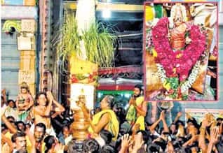 சோழவந்தான் ஜெனகைமாரியம்மன் கோயில் வைகாசி திருவிழா கொடியேற்றம் நேற்று நடந்தது. உள்படம்: சர்வஅலங்காரத்தில் அம்மன்.