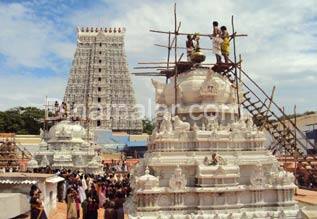 தூத்துக்குடி: திருச்செந்தூர் முருகன் கோயிலில், நேற்று, கும்பாபிஷேக தின, வருஷாபிஷேகம், நடந்தது. ஏராளமான பக்தர்கள் தரிசனம் செய்தனர். இதையொட்டி, கோயில் நடை, அதிகாலை 4 மணிக்கு திறக்கப்பட்டு, சிறப்பு பூஜைகள் நடந்தன. கும்ப கலச, பூஜைக்குப்பின், காலை, 10:30 மணிக்கு, வேதமந்திரங்கள் முழங்க, வருஷாபிஷேகம் நடந்தது. மூலவர் சுப்பிரமணியர், வள்ளி- தெய்வானை, விமான கலசங்களுக்கு, போர்த்திகளும், உற்சவர் சண்முகர் விமான கலசத்திற்கு, சிவாச்சாரியார்களும், பெருமாள் விமான கலசத்திற்கு, பட்டாச்சாரியார்களும், புனித நீரால் அபிஷேகம் செய்தனர். பக்தர்களின் மீது, புனித நீர் தெளிக்கப்பட்டது. ஏராளமானோர் தரிசனம் செய்தனர். தொடர்ந்து, கோயிலில், தீபாராதனை நடந்தது. இரவில், சுவாமி குமரவிடங்கப்பெருமான் - வள்ளி அம்பாள், தங்கமயில் வாகனத்தில், வீதியுலா வந்தனர்.