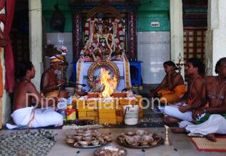 திருவள்ளூர்: மழை வேண்டி ஒத்தாண்டேஸ்வரர் கோவிலில் சிறப்பு யாகம் நடைபெற்றது. மழை பெய்ய வேண்டி, தமிழகத்தில் உள்ள அனைத்து கோவில்களிலும் யாகங்கள் செய்ய வேண்டும் என, தமிழக அரசு உத்தரவிட்டுள்ளது. இதற்கிணங்க, திருவள்ளூர் அடுத்த, திருமழிசையில் உள்ள குளிர்ந்தநாயகி உடனுறை ஒத்தாண்டேஸ்வரர் கோவிலில் மழை வேண்டி சிறப்பு யாகம் நேற்றுமுன்தினம் நடைபெற்றது. காலை, 7:00 மணிக்கு விநாயகர் பூஜை நடைபெற்றது. 7:15 மணிக்கு சங்கல்பமும், 7:29 மணிக்கு விசேஷ பூஜைகள், வேள்வி வழிபாடு நடைபெற்றது. இதில், மழை வேண்டி சூக்த ஜப பாராயணம், திருமுறை பாராயணம் மற்றும் நாதஸ்வர இசை வழிபாடு நடைபெற்றது. பகல், 12:05 மணிக்கு ஒத்தாண்டேஸ்வரர், குளிர்ந்த நாயகி அம்மனுக்கு ருத்ர சமக பாராயணத்துடன் மகா அபிஷேகம் நடைபெற்றது. பகல், 12:45 மணிக்கு மகா பூர்ணாஹூதி தீபாராதனை நடைபெற்றது. மேலும், திருக்கல்யாண மண்டபத்தில் சந்திரசேகரர் உற்சவ மூர்த்திக்கு சிறப்பு அலங்காரம், சிறப்பு வழிபாடு, தீபாராதனை மற்றும் யாக பூஜைகள் நடத்தப்பட்டன.
