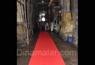 ராமேஸ்வரம்: ராமேஸ்வரம் கோவிலில், நீராடும் பக்தர்கள் சறுக்கி விழால் இருக்க, "ரப்பர் புளோர் மேட் அமைக்கப்பட்டு உள்ளது. ராமேஸ்வரம் ராமநாதசுவாமி கோவிலில், 22 தீர்த்தங்களில் நீராட பக்தர்கள் சுற்றி வரும்போது, தேங்கியுள்ள தண்ணீரில் வழுக்கி விழுந்து காயம் அடைகின்றனர். இதையடுத்து, பக்தர்கள் நடந்து செல்ல வசதியாக, கிழக்கு வாசலில் இருந்து, சுவாமி சன்னிதி செல்லும் பாதையில், 100 மீட்டர் தூரத்திற்கு, "ஆன்டிஸ்கிட் ரப்பர் மேட் நேற்று அமைக்கப்பட்டு உள்ளது. அடுத்தகட்டமாக, தீர்த்த கிணறுகளுக்கு செல்லும் பாதையில், அமைக்கப்படும் என, கோவில் அலுவலர் ஒருவர் தெரிவித்தார்.
