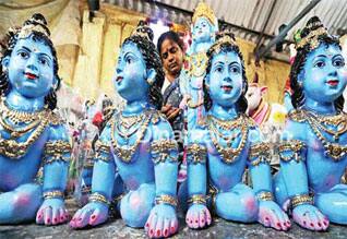 சென்னை : கிருஷ்ண ஜெயந்தி விழாவையொட்டி, கொசப்பேட்டையில், களிமண்ணால் ஆன கிருஷ்ணர் சிலைகள் தயாரிக்கும் பணி, மும்முரமாக நடந்து வருகிறது. கிருஷ்ண ஜெயந்தி விழா, வரும், 28 ம் தேதி கொண்டாடப்படுகிறது. அதற்கான சிலை தயாரிப்பு, மூன்று மாதங்களாக, கொசப்பேட்டையில் நடந்து வருகிறது. இதில், 20க்கும் மேற்பட்ட குடும்பங்கள் ஈடுபட்டுள்ளன. இங்கு, 27 விதமான கிருஷ்ணர் சிலைகள் தயாரிக்கப்படுகின்றன.இவை, 10 ரூபாய் முதல், 350 வரை, விற்கப்படுகின்றன. இங்கு தயாரிக்கப்படும் சிலைகள், வெளிநாடுகளுக்கும் அனுப்பப்படுகிறது. சிலை தயாரிப்பு பணியில் ஈடுபட்டு உள்ள சாந்தி கூறியதாவது. இங்கு, 20 வருடங்களாக, சிலை செய்து வருகிறோம். முன்பை விட, தற்பொழுது விற்பனை குறைந்துள்ளது. முன்பு, இந்த பகுதியில், 100 குடும்பங்கள் இந்த தொழிலில் ஈடுபட்டிருந்தது. மூலப்பொருள்களின் விலை ஏற்றம், இடவசதியின்மை போன்ற காரணங்களால், தொழிலில் ஈடுபடும் குடும்பங்களின் எண்ணிக்கை, 20 ஆக குறைந்து உள்ளது. இவ்வாறு, சாந்தி கூறினார்.