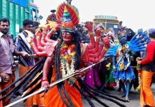 தசரா திருவிழா வரும் அக்-5ம் தேதி கொடியேற்றத்துடன் துவங்குகிறது.வரும் அக்-15ம் தேதி மகிஷா சூரசம்ஹாரம் நிகழ்ச்சி நடக்கிறது.காளி வேடம் அணிபவர்கள் தங்களது வசதிக்கேற்ப 60 நாட்கள்,30 நாட்கள்,15 நாட்கள் என விரதம் இருப்பார்கள். அவ்வாறு விரதம் இருக்கும் பக்தர்கள் கடலில் குளித்துவிட்டு கோயில் பூசாரியிடம் மாலை அணிந்து விரதத்தை துவங்குவார்கள். காலை, மாலை பழமும்,மதியம் மட்டும் பச்சரிசி சாதம் மற்றும் தாளிக்காத பருப்பு சாம்பார் பயன்படுத்துவார்கள். இரு முறை குளித்து தாங்கள் அணியும் சடை,கிரீடம்,சூலாயுதம் போன்றவற்றிற்கு பூஜை செய்வார்கள். குறிப்பாக கடுமையான பிரம்மச்சாரி விரதம் கடைபிடிக்க வேண்டும். எனவே மிக பயபக்தியுடன் உள்ள கட்டுப்பாடு உள்ளவர்கள் மட்டுமே காளி வேடம் அணிவார்கள்.தற்போது விரதம் மேற்கொண்டு வரும் காளி பக்தர்கள் சிலர் கோயிலிலே தங்கி விரதம் இருந்து வருகின்றனர்.கொடியேற்றம் நடந்தவுடன் வேடம் அணியும் பக்தர்கள் கோயில் காப்பு கட்டி காணிக்கை பிரிக்க துவங்குவார்கள். தசரா திருவிழாவிற்கான ஏற்பாடுகளை கோயில் நிர்வாக அதிகாரி மற்றும் ஊழியர்கள் செய்துவருகின்றனர்.