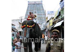 ஸ்ரீரங்கம்: துலாம் மாத பிறப்பையொட்டி ஸ்ரீரங்கம் ரங்கநாதருக்கு காவிரி அம்மா மண்டபம் படித்துறையிலிருந்து தங்கக் குடத்தில் புனித நீர் எடுத்து, யானை ஆண்டாள் மீது வைத்து ஊர்வலமாக நேற்று கோவிலுக்கு கொண்டுவரப்பட்டது. இந்த சிறப்பு பூஜையில் ஏராளமான பக்தர்கள் கலந்து கொண்டனர்.