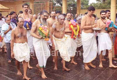 சபரிமலையில் தற்போது ஐப்பசி மாத பூஜைகள் நடைபெற்று வருகிறது. உச்சபூஜையின் போது பூஜிக்கப்பட்ட கலசங்களை தந்திரி, மேல்சாந்தி மற்றும் பூஜாரிகள் எடுத்து வந்து களபாபிஷேகம் நடைபெற்றது. ஐப்பசி மாத பூஜை தரிசனத்திற்காக சன்னிதானத்தில் பக்தர்கள் கூட்டம் அலைமோதியது. மாத பூஜைக்கு பின் இன்று சபரிமலை நடை அடைக்கப்படுகிறது.