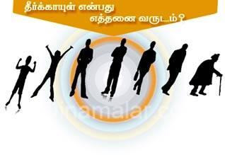 மனிதனுக்கு முழுமையான ஆயுள் 120 என்கிறது ஜோதிட சாஸ்திரம். இதில் 33 வயது வரை அற்பாயுள், 66 வயது வரை மத்திமம், 67 வயதுக்கு மேல் தீர்க்காயுள், 80 வயதுக்கு மேல் மகாதீர்க்கம் என்றும் பிரிக்கின்றனர்.