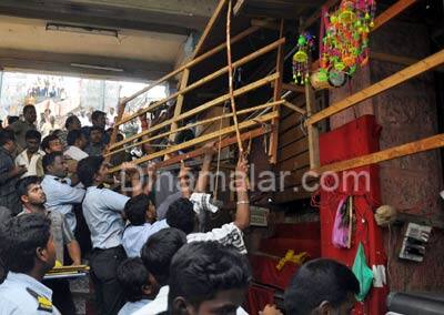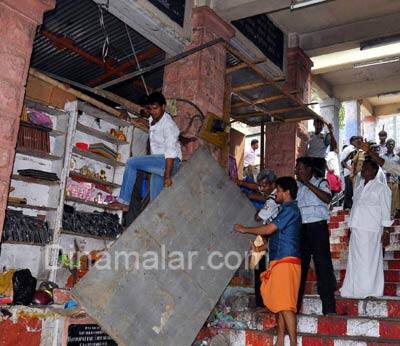 குழப்பம்: இதில், 13 கடைக்காரர்களில் 10 கடைக்காரர்கள் நீதிமன்றத்தில் தடை பெற்றுஉள்ளதாலும், இதுகுறித்து இந்து அறநிலையத்துறை செயலாளரிடமிருந்து உத்தரவு கிடைக்காத காரணத்தாலும், அவற்றை அகற்றுவது குறித்த முடிவில் குழப்பம் ஏற்பட்டது. இறுதியாக, மேல்முறையீடு செய்யாத மூன்று கடைகளை அகற்றுவது, மற்ற 10 கடைகளில், அவர்களுக்கு ஒதுக்கப்பட்ட இடத்தை அளந்து, ஆக்கிரமிப்புகளை அகற்ற முடிவு எடுக்கப்பட்டது. இதன்படி 9,10,13 எண் கடைகள் அகற்றப்பட்டன.