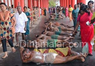 தூத்துக்குடி: திருச்செந்தூர் முருகன் கோவிலில், கந்தசஷ்டி விழா, யாகசாலை பூஜையுடன் துவங்கியது. பக்தர்கள் பச்சை ஆடை உடுத்தி, விரதத்தை துவக்கினர். திருச்செந்தூரில் கந்தசஷ்டி விழா நேற்று துவங்கியது. இதையொட்டி, அதிகாலை, 1:00 மணிக்கு நடை திறக்கப்பட்டு, 1:30க்கு விஸ்வரூப தீபாராதனை நடந்தது. அதைத் தொடர்ந்து, அபிஷேகமும், பூஜைகளும் நடந்தன. காலை, 9:30 மணிக்கு, பூர்ணாஹுதியுடன் யாகசாலை பூஜை துவங்கியது. பின், ஜெயந்திநாதர் தங்க சப்பரத்தில், திருவாவடுதுறை மண்டபத்தில் வள்ளி, தெய்வானையுடன் எழுந்தருளி, பக்தர்களுக்கு காட்சியளித்தார். பின், தங்க சப்பரத்தில் கிரிவீதி உலா நடந்தது. அதன் பின், வெளியூர் மற்றும் வெளிநாடுகளில் இருந்து வந்த ஆயிரக் கணக்கான பக்தர்கள், கடலிலும், நாழி கிணற்றிலும் நீராடி, பச்சை ஆடை உடுத்தி, சஷ்டி விரதத்தை துவக்கினர். வரும், 8ம் தேதி சூரசம்ஹாரம் விழா நடக்கிறது.