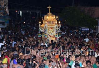 தூத்துக்குடி: திருச்செந்தூரில், கந்த சஷ்டி விழாவின் இரண்டாம் நாளான நேற்று, தங்கதேரில் எழுந்தருளி, ஜெயந்திநாதர் வீதி உலா வந்தார். திருச்செந்தூர் கந்த சஷ்டி விழா, நேற்று முன் தினம், யாக சாலை பூஜையுடன் துவங்கியது. பக்தர்கள் அங்கபிரதட்சணம் செய்து, பச்சை ஆடை உடுத்தி, சஷ்டி விரதத்தை துவக்கினர். இரண்டாம் நாளான, நேற்று பகல், 12:45 மணிக்கு, தங்க சப்பரத்தில் ஜெயந்திநாதர் எழுந்தருளினார். "வேல் வகுப்பு, வீரவாள் வகுப்பு பாடலுடன், சண்முக விலாசம் சென்றடைந்தார். மாலை, 4:00 மணிக்கு, திருவாவடுதுறை ஆதீன சஷ்டி மண்டபத்தில், ஜெயந்திநாதருக்கு ஆராதனை நடந்தது. தங்க ரத்தில் வீதி உலா வந்து பின், கோயில் சென்றடைந்தார்.