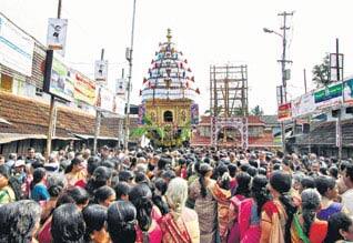 பாலக்காடு: கேரள மாநிலம், கல்பாத்தி, விசாலாட்சி உடனுறை விஸ்வநாதர் கோவில் தேர் திருவிழா, நேற்று முன்தினம் துவங்கியது.திருவிழாவின், முதல் நாளில், விசாலாட்சி உடனுறை விஸ்வநாதர் சுவாமி, சுப்பிரமணியர், கணபதி சிலைகள் அலங்கரிப்பட்ட தேரில், நான்கு வீதிகளிலும் உலா வந்தன. இரண்டாம் நாளான நேற்று, மந்தக்கரை, மகா கணபதி கோவில் தேர், பழைய கல்பாத்தி லட்சுமி நாராயண பெருமாள் தேரோட்டம், செண்டைமேள தாளத்துடன் வீதிகளில் வலம் வந்தன. இன்று, சாத்தப்புரம் பிரசன்ன கணபதி கோவில் தேர் உலா துவங்குகிறது. மாலை, 6:00 மணிக்கு, விசாலாட்சி உடனுறை விஸ்வநாதர் கோவில் அருகே, ஆறு தேர்களின் சங்கமம் நடக்கிறது.