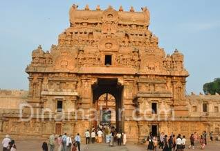 தொடர்ந்து, சென்னை உபவட்ட கண்காணிப்பாளர் மகேஸ்வரி நிருபர்களுக்கு அளித்த பேட்டி: தஞ்சை பெரியகோவிலில் ராஜராஜன் நுழைவாயில் கோபுரத்தில் விரிசல் ஏற்பட்டுள்ளது. தூணிலும் விரிசல் உள்ளது. மேல்தளத்தில் இருந்து மழை நீர், கோபுரத்தின் விரிசல் வழியாக கொட்டி, கோபுரம் பாதிக்கப்படலாம். அதனால், முன்னெச்சரிக்கையாக, ஒரு கோடி ரூபாய் மதிப்பில் கோபுரத்தின் விரிசல் மற்றும் சீரமைப்பு பணிகளை மேற்கொள்ள, திட்டம் தயாரிக்கப்பட்டுள்ளது. தற்போதைய விரிசலால் ஆபத்து ஏதுமில்லை. நவீன தொழில்நுட்ப முறையில் மேல்தளத்திலுள்ள காரைகளை எடுத்து விட்டு, மழை நீர் புகாதவாறு சீரமைக்கப்படும். தூண்களையும் அகற்றாமல், அதே இடத்தில் வைத்து, பராமரிப்பு செய்வதற்கான நவீன தொழில்நுட்ப வசதி பயன்படுத்தப்படும். இதற்காக அறிவியல் தொழில்நுட்ப வல்லுனர்களை அணுகியுள்ளோம். பெரியகோவில், உலக பாரம்பரிய சின்னங்களில் ஒன்று என்பதால், பணிகள் கவனமாக மேற்கொள்ளப்படும். கோவிலைச் சுற்றியுள்ள மரங்களை அகற்ற, நகராட்சி நிர்வாகத்திடம் கோரப்பட்டுள்ளது. தொடர்ந்து, கண்காணிப்பு கோபுரம் அமைத்து, 36 இடங்களில் கேமரா பொருத்தப்படும். இத்திட்டம் முதன்முதலாக பெரியகோவிலில் அமல்படுத்தப்படும். பின், பிற கோவில்களில் நிறுவப்படும். ராஜராஜன் ஒளி-ஒலி காட்சியகம் அமைப்பதில் சிக்கல் உள்ளது. இதனால், சுற்றிலும் எழும் ஒலி, ஒளிகளால் புராதன சின்னம் பாதிக்கப்படும். எனவே, இதுகுறித்து பரிசீலித்து, அருகிலுள்ள அரண்மனையில் காட்சியகம் அமைக்க, ஆலோசனை கூறப்பட்டுள்ளது. தஞ்சை பெரியகோவில் கருவறையிலுள்ள, சோழர் கால ஓவியங்கள், நன்முறையில் பராமரிக்கப்படுகின்றன. ராஜராஜன் சமாதி குறித்த சர்ச்சைக்குள், செல்ல விரும்பவில்லை. இவ்வாறு, அவர் கூறினார்.