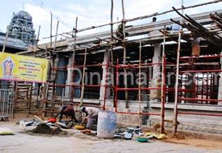 சென்னிமலை: சென்னிமலை முருகன் கோவிலில் திருப்பணிகள் மும்முரமாக நடந்து வருகிறது. பல திருப்பணிகள் நிறைவு பெற்றுள்ள நிலையில் தற்போது ÷ஷாபன மண்டபம் கட்டுமான பணிகளும் படு சுறுசுறுப்பாக நட!ந்து வருகிறது. கந்த சஷ்டி கவசம் அரங்கேற்றம் நடந்த சென்னிமலை கோவில் மிகவும் பிரசித்தி பெற்றது. மலை மீதுள்ள முருகன் கோவிலில், 1.50 கோடி ரூபாய் செலவில், ஐந்து நிலை ராஜகோபுரம் மற்றும் பல்வேறு திருப்பணிகள் கடந்த, 2005ம் ஆண்டு துவங்கி, கடந்த, எட்டு ஆண்டாக நடந்து வருகிறது. ராஜகோபுரம் கட்டி முடிக்கப்பட்ட நிலையில், அதில் சுவாமி சிலைகள் வடிவமைக்கும் பணிகள் நிறைவடைந்துள்ளது. அதில், 146 உருவங்களை கொண்ட அலங்கார சுவாமி சிலைகள் அமைக்கப்பட்டுள்ளது. தற்போது, பஞ்சவர்ணம் பூசும் பணி துவங்க உள்ளது. 60க்கும் மேற்பட்ட தொழிலாளர்கள், இரவு பகலாக வேலை செய்து வருகின்றனர். தவிர, மலை மீது கோவில் வளாகத்தில், 1.85 கோடியில் புதிதாக மார்க்கண்டேஸ்வரர் சன்னதி மற்றும் காசிவிஸ்வநாதர் சன்னதிகளும் கட்டப்பட்டு, 95 சதவீத பணிகள் நிறைவு பெற்றுள்ளது. இப்பணிக்காக, நாமக்கல் மாவட்டம் ராசிபுரத்தில் உள்ள, ஒரு மலைபகுதியில் இருந்து பெரிய, பெரிய கருங்கற்கள் கொண்டு வரப்பட்டு, முழுமையாக கல்லில் வடிவமைக்கப்படுகிறது. புதுவிதமான மதில் சுவர், 80 லட்சம் ரூபாய் செலவில் அமைக்கப்பட்டுள்ளது. தவிர, பல இடங்களில் வேல் மற்றும் மயில் உள்ளது போன்ற தோற்றமும், சிலையாக வடிவமைக்கப்பட்டு, பணிகள் நிறைவு பெறும் தருவாயில் உள்ளது. இப்பணிக்கு மட்டும், 36 லட்சம் செலவிடப்படுகிறது. தற்போது ÷ஷாபன மண்டபம் கட்டும் பணி, 29 லட்சம் செலவில், நன்கொடையாளர்கள் உதவியுடன் மிகவும் நவீன யுக்திகளுடன், பழைய மரபுகள் மாறாத வண்ணம், கட்டுமான பணிகள் நடக்கிறது. இதில் பல ஆண்டாக உள்ள கற்துண்கள் சிலவற்றில், பல சுவாமி சிலைகள் இருப்பதால், இதை அப்படியே மீண்டும் பயன்படுத்தி உள்ளனர். இப்பணிகள் துவங்க ஏதுவாக, சுவாமி தரிசனம் செய்ய பயன்படுத்தப்பட்டு வந்த, கஜலட்சுமி நுழைவு வாயில் அடைக்கப்பட்டு, பக்தர்கள் வசதிக்காக மகாமண்டபத்தின், அந்தராலய வழியில் பக்தர்கள் சுவாமி தரிசனம் செய்ய அனுமதிக்கப்படுகின்றனர். இப்பணிகள், 2014ம் ஆண்டில் நிறைவு பெறும் என எதிர்பார்க்கப்படுகிறது. அ.தி.மு.க., ஆட்சி அமைத்தவுடன், முன்பு இருந்து அறங்காவலர்கள் பதவியை ராஜினாமா செய்து விட்ட நிலையில், இன்னும் புதிய அறங்காவலர்கள் நியமிக்கப்படவில்லை. விரைவில் அறங்காவலர்களை அரசு நியமித்தால், திருப்பணிகள் வேகமாக நடக்க வாய்ப்பு ஏற்படும், என பக்தர்கள் எதிர்பார்க்கின்றனர்.