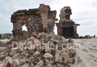 ராமேஸ்வரம்: தனுஷ்கோடி புயலில் அழிந்து போன விநாயகர் கோயிலில் உள்ள சுண்ணாம்பு, செங்கல் கல்லை பெயர்த்து எடுப்பதால், வரலாறு சின்னம் அழியும் அபாயம் உள்ளது. கடந்த 1964ல் ஏற்பட்ட புயலில், வணிக நகரமான தனுஷ்கோடி அழிந்தது, ஆயிரம் உயிர்களை பறித்த அச்சம்பவம், தேசிய பேரிழப்பாகும். ஆனால் இங்கிருந்த மாதா சர்ச், ரயில்வே ஸ்டேஷன், தங்கும் விடுதி, விநாயகர் கோயில் புயலில் சேதமடைந்தன. புயலில் அழிந்த இவை, இன்னமும் வரலாற்று சின்னமாகவும் விளங்குகின்றன. ஆனால், இங்கு வசிக்கும் மக்கள் வீடு, கடைக்கு தரை தளம் அமைக்க, உருக்லைந்த விநாயர் கோயிலில் உள்ள சுட்ட சுண்ணாம்பு கல், செங்கற்களை பெயர்த்து எடுத்து செல்கின்றனர். கோர புயலில் தாக்கு பிடித்த கட்டடம், மனித தாக்குதலில் இருந்து தப்பிக்க, மாநில அரசு நடவடிக்கை எடுக்க வேண்டும். ராமேஸ்வரம் தாசில்தார் மீனாட்சி கூறியதாவது: தனுஷ்கோடி புயலில் சேதமடைந்த கட்டடத்தில் இருந்து, கற்களை உடைத்து எடுப்பதாக புகார் வரவில்லை. வருவாய் ஆய்வாளரை தனுஷ்கோடிக்கு அனுப்பி ஆய்வு செய்து, கற்கள் உடைத்திருந்தால் சம்பந்தப்பட்டவர்கள் மீது நடவடிக்கை எடுக்கப்படும், என்றார்.