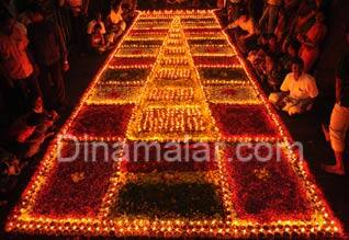 திருச்சி: ஸ்ரீரங்கம் ரெங்கநாதர் கோவிலில் பெரிய சன்னதியில், உலக நன்மைக்காக பல்லாயிரக்கணக்கான தீபங்கள் ஏற்றி சகஸ்ரதீப வழிபாடு நடந்தது. ஏராளமான பக்தர்கள் தரிசனம் செய்தனர்.