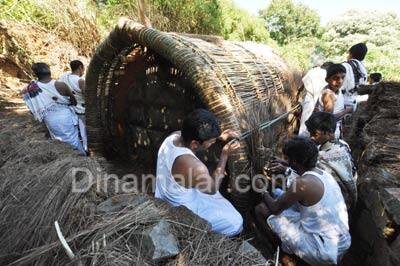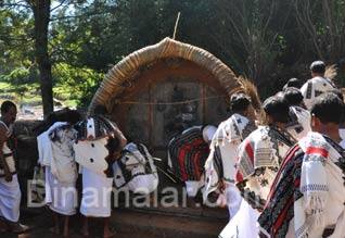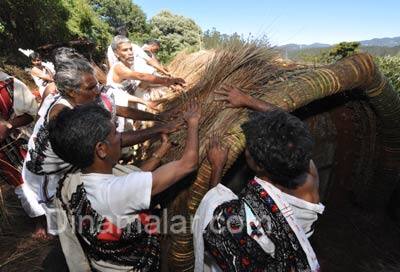 ஊட்டி: அட்டக்கோடு மந்துவில், தோடரின கோவிலில் கூரை மாற்றும் நிகழ்ச்சி நடந்தது. ஊட்டி அருகேயுள்ள அட்டக்கோடு மந்துவில், தோடரின மக்களின் கோவில் உள்ளது. இந்த கோவில் கூரை, வனங்களில் இயற்கையாக கிடைக்கும், பிரம்பு, மூங்கில், அவுல் எனப்படும் ஒரு வகை புல்லை கொண்டு வேயப்பட்டுள்ளது. இந்நிலையில், கோவிலின் கூரையை மாற்றும் நிகழ்ச்சி நேற்று நடந்தது. அங்குள்ள மக்கள் தங்களின் பாரம்பரிய உடையணிந்து, வனங்களில் இருந்து சேகரித்து கொண்டு வரப்பட்ட பொருட்களை கொண்டு, கோவிலை புதுப்பிக்கும் பணியில் ஈடுபட்டனர். இதேப்போல, மாவட்டத்தின் பல்வேறு பகுதிகளிலும், ஒவ்வொரு காலகட்டத்திலும், தோடர் இன மக்களின் கோவில்களை புனரமைக்கும் பணிகள் சுழற்சி முறையில் நடந்து வருகிறது.