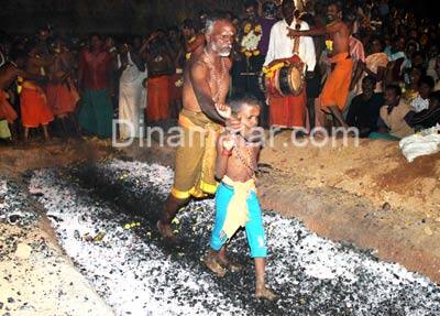 மூணாறு: மூணாறில் ஐயப்ப சேவா சங்கம் சார்பில் நடைபெற்ற தீ மிதித் திருவிழாவில் ஐயப்ப பக்தர்கள் தீ மிதித்து நேர்த்திக்கடன் செலுத்தினர். மூணாறில் ஐயப்ப சேவா சங்கம் சார்பில், ஆண்டு தோறும் பக்தர்கள் ஊர்வலம் நடத்தி ஐயப்பனை வழிபட்டு வருகின்றனர். இந்தாண்டு நேற்று முன்தினம், பழைய மூணாறு பார்வதியம்மன் கோயிலில் இருந்து பூக்காவடி, செண்டை மேள தாளத்துடன் நடைபெற்ற ஊர்வலத்தில், சுவாமி ஐயப்பன் பவனி வந்து அருள்பாலித்தார். இந்த ஆண்டு, முதன்முறையாக சுப்பிரமணிசுவாமி கோயில் வளாகத்தில் அக்னி வளர்க்கப்பட்டு, பக்தர்கள் தீ மிதித்து நேர்த்திக்கடன் செலுத்தினர். ஊர்வலம் தொடங்கிய போதும், முடிவடைந்த போதும் கருடன் வட்டமடித்தது.