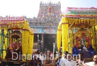 திருப்பரங்குன்றம்: திருப்பரங்குன்றம் சுப்பிரமணிய சுவாமி கோயிலில் ஆருத்ரா தரிசன விழா டிச. 9ல் மாணிக்க வாசகருக்கு காப்பு கட்டும் நிழச்சியுடன் தொடங்கியது. நேற்று இரவு கோயில் முன்பு அமைக்கப்பட்டிருந்த ராட்டினத்தில் சத்தியகிரிஸ்வரர், கோவர்த்தனாம்பிகை அம்பாள் எழுந்தருளி ராட்டின திருவிழா நடந்தது. ஆருத்ரா தரிசனத்தை முன்னிட்ட அதிகாலை மூலவர் நடராஜர் வியாத்ர பாதர் முனிவர், காரைக்கால் அம்மையார், சிவகாசி அம்பாள், பதஞ்சலி முனிவருக்கு தைல காப்பு சாத்துப்படி செய்யப்பட்டு, உற்சவர் நடராஜர், சிவகாமி அம்பாளுக்கு சிறப்பு அபிஷேக ஆராதனைகள் முடிந்து நடராஜர், மாணிக்கவாசகர் சிம்மாசனத்திலும், சிவகாமி அம்பாள் வெள்ளி அம்பாரியிலும் பூ சப்பரங்களில் கிரிவலம் சென்று அருள்பாலித்தனர். திருநகர்