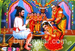 ஆண் வீட்டாரும் பெண் வீட்டாரும் கலந்து ஆலோசித்து விரைவிலேயே திருமணத்திற்கு நந்நாளும் குறித்தனர். மணமகள் மாளிகையிலேயே திருமணத்தை நடத்துவதாகத் தீர்மானம் செய்யப்பட்டது.திருமணத்திற்கு முதல் நாள் கலிக்காம நாயனார் உறவினர்களுடன் புடைசூழ வெண்புரவிமீது அமர்ந்து மணமுரசுகள் முழுங்கப் புறப்பட்டு வந்து கொண்டிருந்தார். இவர் கஞ்சாறுருக்கு சமீபத்தில் ஓரிடத்தில் வந்து தங்கினார். திருமண நாளன்று எம்பெருமான் அந்தணர் கோலம் அணிந்து மானக்கஞ்சாறர் மனைக்கு எழுந்தருளினார்.கங்கை அணிந்த திருச்சடையிலே உருத்திராட்ச மாலையை சுற்றியிருந்தார். குண்டலம் இரண்டும் காதுகளிலே ஒளிர, திருத்தாழ்வடம் திருமார்பிலே பிரகாசிக்க பட்டிகையும், கருநிறம் பொருந்திய மயிர்வடப் பூணூலும், திருநீற்றுப் பையும், தோளிலே அணிந்திருக்க, நெற்றியும், திருமேனியும், திருநீற்றினைப் பெற்றிருக்க அரனார் அந்தணர் கோலத்திற்கு ஏற்பத் தம் வடிவத்தை கொண்டிருந்தார். இத்தகைய சூரியகோடிப் பிரகாசத்தோடு எம்பெருமான் மானக் கஞ்சாறர் மனையை அடைந்தார். சிவனடியார் தம் மனை நோக்கி மகளின் மணநாள் அன்று எழுந்தருள்வது கண்டு மகிழ்ச்சி பொங்க வரவேற்றார் அடியார். அவர் தம் பொற்பாதங்களில் விழுந்து வணங்கி எழுந்தார். தேவரீர் ! எழுந்தருள இங்கு யாம் என்ன தவம் செய்தோமோ ? என்று முகமன் கூறினார். வலம் வந்து வணங்கினார் மானக் கஞ்சாறர். தோரணம் தொங்கும் பந்தலிலே மங்கள இசை ஒலித்துக் கொண்டிருந்தது. அதுகண்டு அரனார் ஒன்றுமறியாதவர் போல, இங்கு ஏதாவது மங்கள காரியம் இன்று நடக்க இருக்கிறதோ ? என்று கேட்டார். ஆம், ஐயனே ! இந்த அடியேனின் மகளுக்குத் திருமணம் என்று கூறி மீண்டும் அடியாரை வணங்கிய திருத்தொண்டர் அகத்துள் சென்று திருமணக் கோலத்திலிருக்கும் தம் மகளை அழைத்து வந்தார்.மணப்பெண்ணும் மாத் தவசியின் காலில் விழுந்து வணங்கினாள். மங்களம் உண்டாகட்டும் என்று மணப்பெண்ணை மனங்குளிர வாழ்த்தினார் பெருமான் ! சிவனாரின் அருட்கண்கள் மணப்பெண்ணின் சுருளேறிய நெடுங்கூந்தலை நோக்கின. கார் போல் கறுத்து நாற்றுப்போல் அடர்ந்து ஆலம் விழுதுபோல் நீண்டிருந்த கூந்தலைப் பார்த்த பரமன், இவளுடைய கூந்தல் கிடைத்தால் எம்முடைய பஞ்சவடிக்கு உதவும்போல் இருக்கிறதே என்றார்,