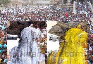 தஞ்சாவூர்: பிரதோஷத்தை முன்னிட்டு, தஞ்சாவூர் பெரிய கோவிலில் மகா நந்தியம் பெருமானுக்கு குடம், குடமாக பல்வேறு அபிஷேகங்கள் நடைபெற்றது. ஏராளமான பக்தர்கள் தரிசனம் செய்தனர்.