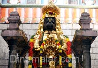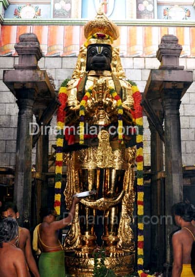 நாமக்கல் : நாமக்கல் மாவட்டம் நாமகிரி பகுதியில் கி.பி.8ம் நூற்றாண்டில் கட்டப்பட்ட நரசிம்மர் அரங்கநாதர் குடவரை கோயில் அருகே புகழ்பெற்ற ஆஞ்சநேயர் கோயில் உள்ளது. இக்கோயிலில் இன்று ஜெயந்தி விழா கோலாகலமாக நடைபெற்று வருகிறது. ஆஞ்சநேயர் ஜெயந்தியை முன்னிட்டு நேற்று நள்ளிரவு முதல் ஆஞ்சநேயருக்கு சிறப்பு அபிஷேக ஆராதனைகள் நடத்தப்பட்டு வருகிறது. இன்று காலை 8.30 மணிக்கு ஆஞ்சநேயருக்கு தங்க கவசம் அணிவிக்கப்பட்டது. தங்க கவச அலங்காரத்தில் அருள்பாலிக்கும் ஆஞ்சநேயரை லட்சகணக்கான பக்தர்கள் தரிசனம் செய்து வருகின்றனர்.