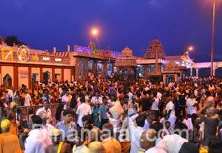 பழநி: ஆங்கில புத்தாண்டையொட்டி, பழநியில் பக்தர்கள், ஐந்து மணி நேரம் காத்திருந்து, சுவாமி தரிசனம் செய்தனர். பழநியில் தைப்பூச பாதயாத்திரை, சபரிமலை பக்தர்கள் வருகை காரணமாக, பக்தர்கள் கூட்டம் நாளுக்கு நாள் அதிகரித்து வருகிறது. இந்நிலையில், ஆங்கிலப் புத்தாண்டு பிறப்பை முன்னிட்டு, நேற்று முன்தினம் நள்ளிரவு முதலே, பக்தர்கள் குவிந்தனர். "வின்ச் ஸ்டேஷனில் மூன்று மணிநேரம் காத்திருந்து, பக்தர்கள் மலைக்கோவில் சென்றனர். மலைக்கோவிலில் பொது மற்றும் வி.ஐ.பி., கட்டண வழி உட்பட, அனைத்து தரிசன வழிகளிலும், பக்தர்கள் நீண்ட வரிசையில், ஐந்து மணி நேரம் காத்திருந்து, மூலவர் தண்டாயுதபாணியை தரிசனம் செய்தனர்.