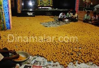 தர்மபுரி கோட்டை: பரவாசுதேவர் ஸ்வாமி கோவிலில், வைகுண்ட ஏகாதசியை முன்னிட்டு, பக்தர்களுக்கு வழங்க, ஒரு லட்சம் லட்டு பிரசாதமாக வழங்கப்படுகிறது. கோயிலில் லட்டு பிடிக்கும் பணியில் தொழிலாளர்கள் ஈடுபட்டனர்.
