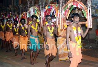 முதுகுளத்தூர்: முதுகுளத்தூர் சரவணா பழநி பாதயாத்திரை குழு, குருநாதர் நவநீதகிருஷ்ணன் தலைமையில், டிரஸ்டி அழகுசரவணன், பாதியாத்திரை குழு தலைவர் குமரையா, செயலாளர் முனியசாமி, பொருளாளர் மனோகரன் உட்பட 48 காவடி யாத்திரை ஊர்வலம், அலகு குத்தியும், பக்தர்கள் யாத்திரை சென்றனர். மங்களசுவாமி சரவணா பாதயாத்திரை தலைவர் சண்முகம் தலைமையிலும், குருநாதர் வேல்ச்சாமி, பொருளாளர் முருகானந்தம் முன்னிலையிலும் பக்தர்கள் யாத்திரை சென்றனர்.