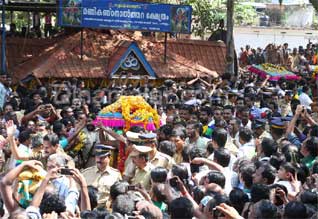 சபரிமலை: மகரவிளக்கு நாளில், அய்யப்பனுக்கு அணிவிக்கும் திருவாபரணங்கள் அடங்கிய பவனி, பந்தளத்திலிருந்து, நேற்று புறப்பட்டது. சபரிமலையில், இந்த ஆண்டுக்கான மகரவிளக்கு காலம் நிறைவு கட்டத்தை நெருங்கியுள்ளது. நாளை மாலை, மகரவிளக்கு பெருவிழாவும், பொன்னம்பலமேட்டில் மகரஜோதி தரிசனமும் நடக்கிறது. இதற்காக, நாட்டின் பல பகுதிகளில் இருந்து, ஆயிரக்கணக்கான பக்தர்கள் சபரிமலை நோக்கி வந்த வண்ணம் உள்ளனர். மகரவிளக்கு நாளில், பந்தளம் அரண்மனையில் இருந்து வழங்கப்படும் திருவாபரணங்கள் அய்யப்பனின் விக்ரகத்தில் அணிவிக்கப்பட்டு, தீபாராதனை நடக்கிறது. இந்த ஆண்டுக்கான திருவாபரண பவனி, நேற்று, பந்தளம் வலியகோவிக்கல் சாஸ்தா கோவிலில் இருந்து புறப்பட்டது. காலை, 5:00 மணி முதல், திருவாபரணங்கள் திறந்து வைக்கப்பட்டிருந்தது. நீண்ட வரிசையில் நின்று, பக்தர்கள் தரிசனம் செய்தனர். பகல், 12:30 மணிக்கு நடை மூடப்பட்டது. பின், பந்தளம் மன்னர் பிரதிநிதி திலிப்வர்மா ராஜா முன்னிலையில், திருவாபரணங்கள் மூன்று பேடகங்களில் அடைக்கப்பட்டு, பூஜை நடந்தது. சரணகோஷங்கள் முழங்க, திருவாபரண பவனி புறப்பட்டது. குருசாமி கங்காதரன் தலைமையிலான பக்தர்கள் திருவாபரண பெட்டிகளை சுமந்து வந்தனர். இவை, நாளை மாலை, 5:30க்கு சரங்குத்திக்கும், 6:15 க்கு சன்னிதானத்திற்கும் வந்து சேருகிறது.