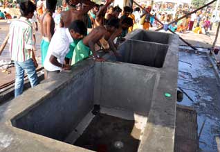 பழநி கோயிலுக்கு, பல்வேறு மாவட்டங்களிலிருந்து பாதயாத்திரையாக வரும் பக்தர்கள், குளிக்க தண்ணீர் கிடைக்காமல் அவதிப்படுகின்றனர். கடந்த பத்தாண்டுகளில் இல்லாத அளவிற்கு, இவ்வாண்டு பழநி வட்டாரத்தில் கடும் வறட்சி நிலவுதால், பக்தர்கள் நீராடும், வரட்டாறு, இடும்பன்குளம், சசண்முகநதி போன்ற இடங்களில் தண்ணீர் இல்லை. தைப்பூசச விழாவை முன்னிட்டு, விரதமிருந்து, பாதயாத்திரையாக கோவை, திருப்பூர், மதுரை, திருச்சி, சிவகங்கை, திருநெல்வேலி உட்பட வெளி மாவட்டத்தைச் சேசர்ந்த பக்தர்கள் வந்தவண்ணம் உள்ளனர். அவர்களின், வசசதிக்காக இடும்பன் குளத்தில், ஆழ்குழாய்கள் அமைத்து, பக்தர்கள் குளிப்பதற்கு தண்ணீர் வழங்க வேண்டும். தைப்பூசச விழா ஆலோசசனை கூட்டத்தில் கலெக்டர் வெங்கடாசசலம் தெரிவித்தார். ஆனால், இடும்பன்குளத்தின், அருகே அமைக்கப்பட்ட ஆழ்குழாயில் எதிர்பார்த்த அளவிற்கு தண்ணீர் கிடைக்காததால், பக்தர்கள் குளிப்பதற்காக அமைக்கப்பட்ட தொட்டியில், தண்ணீர் நிரப்ப முடியவில்லை. இதன் காரணமாக, இடும்பன் குளத்தில் குவிந்த ஆயிரக்காண பக்தர்கள், குளிக்க முடியாமல் ஏமாற்றம் அடைந்தனர். நவீன கட்டண குளிக்குமிடங்களி<<லும் கூட்டம் அலைமோதியது, அவர்கள் குளிக்க ரூ.10 முதல் ரூ.20வரை வசூல் செசய்கின்றனர். இடும்பன்குளம் பகுதியில் பக்தர்கள் குளிக்க, ஆண்டிற்கு பலகோடி ரூபாய் வருமானம் உள்ள, பழநிகோயில் நிர்வாகம் ஏற்பாடு செசய்ய வேண்டும். இதற்கு தமிழக அரசு உத்திரவிட வேண்டும்.