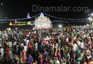 மதுரை: மீனாட்சி சுந்தரேசுவரர் கோயில் தெப்பத்திருவிழாவில் ஏராளமான பக்தர்கள் சுவாமி தரிசனம் செய்தனர். மதுரை மீனாட்சி சுந்தரேசுவரர் தெப்பத்திருவிழா 5-ம் தேதி தொடங்கி நடைபெற்று வருகிறது. முக்கிய நிகழ்ச்சியான தெப்பத்தில் சுவாமி எழுந்தருளும் வைபவம் நேற்று நடைபெற்றது. அம்மன் வெள்ளி அவுராத் தொட்டிலிலும், சுவாமி, பிரியாவிடையுடன் வெள்ளிச் சிம்மாசனத்திலும் எழுந்தருளினர். தெப்பத்திருவிழாவை முன்னிட்டு நிலைத்தெப்பத்தில் எழுந்தருளிய சுவாமி அம்மனை ஏராளமான பக்தர்கள் தரிசனம் செய்தனர். தெப்பத்தில் தண்ணீர் இல்லாததால் நிலைத் தெப்பம் அமைக்கப்பட்டது.