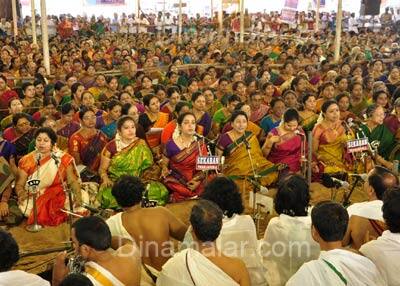 தஞ்சாவூர்: திருவையாறில், ஸ்ரீ தியாகராஜர் சுவாமி ஆராதனை விழாவில், ஆயிரத்துக்கும் மேற்பட்ட கலைஞர்கள் பங்கேற்ற, பஞ்ச ரத்ன கீர்த்தனை இசையஞ்சலி நிகழ்ச்சி நேற்று நடந்தது. சங்கீத மும்மூர்த்திகளில் ஒருவரான, ஸ்ரீ தியாகராஜர் சுவாமி, திருவாரூரில் பிறந்த இவர், தஞ்சை அருகே திருவையாறில், 1847ல் முக்தியடைந்தார். காவிரி ஆற்றின் கரையில், சமாதி, தியாகராஜர் உருவச்சிலை அமைந்துள்ளது. இதன் அருகே, மிகப்பெரிய பந்தலில், ஐந்து நாட்களாக, ஆராதனை விழா நடந்தது. கடந்த, 17ம் தேதி துவங்கி, 167வது ஆராதனை விழா, நேற்று நிறைவடைந்தது. நிறைவு நாளான நேற்று, முக்கிய அம்சமாக, காலை, 9:00 மணி முதல் 10:00 மணி வரை, தியாகராஜர் சுவாமியின் பஞ்ச ரத்ன கீர்த்தனையை, ஆயிரக்கணக்கான கலைஞர்கள், ஒருசேர இசைத்தனர். பிரபல பாடகர்கள், ஜேசுதாஸ், சிவசிதம்பரம், அருண், பாடகியர் அனுராதா, மஹதி, சுதா ரகுநாதன் மற்றும், "சாக்ஸபோன் கத்ரி கோபால்நாத், "மாண்டலின் சீனிவாசன் உட்பட பலர் சிறப்பித்தனர். தியாகராஜர் சிலைக்கு, பால், மஞ்சள் திரவிய அபிஷேகம் நடந்தது. இரவு, 8:00 மணிக்கு சுவாமி திருவீதியுலா, 12:00 மணிக்கு, ஆஞ்சநேயர் உற்சவத்துடன் விழா நிறைவடைந்தது.
