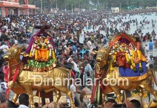 ராமேஸ்வரம்: தை அமாவாசை யொட்டி, ராமேஸ்வரம் அக்னி தீர்த்த கடலில் ஆயிரக்கணக்கான பக்தர்கள், புனித நீராடி தரிசனம் செய்தனர். தை அமாவாசை யொட்டி ராமேஸ்வரம் கோயிலில் இருந்து, ராமநாதசுவாமி, பர்வதவர்த்தினி அம்மன், பஞ்சமூர்த்திகளுடன் தங்க ரிஷப வாகனத்தில் புறப்பாடாகி, அக்னி தீர்த்த கடற்கரையில் எழுந்தருளினர். பின், வேத விற்பன்னர்கள் மந்திரம் முழங்க, மஹா தீபாரதனை நடந்தவுடன், பக்தர்களுக்கு தீர்த்தம் வாரி கொடுக்கும் நிகழ்ச்சி நடந்தது. அப்போது கூடியிருந்த ஆயிரக்கணக்கான பக்தர்கள், முன்னோர்கள் ஆன்மா சாந்தியடைய வேண்டி திதி பூஜை செய்து, அக்னி தீர்த்த கடலில் நீராடினார்கள். பின், கோயிலுக்குள் உள்ள 22 புனித தீர்த்தங்களை நீராட, பக்தர்கள் நீண்ட வரிசையில் காத்திருந்து நீராடினர். சுவாமி, அம்மன் சன்னதியில் நடந்த சிறப்பு பூஜையில், பக்தர்கள் பயபக்தியுடன் தரிசனம் செய்தனர். தரிசனத்திற்கான ஏற்பாடுகளை கோயில் இணை கமிஷனர் செல்வராஜ், கோயில் ஊழியர்கள் செய்திருந்தனர். வெளியூர் பக்தர்கள் வசதிக்காக, மதுரை, விருதுநகர், திருச்சிக்கு சிறப்பு அரசு பஸ்கள் இயக்கப்பட்டது. பக்தர்கள் உட்கார்ந்து சாப்பிட(புளியோதரை சாதம்) வசதியின்றி, நான்கு ரதவீதியில் உள்ள பிளாட்பாரத்தில் அமர்ந்து சாப்பிட்டனர். குடிநீர், கழிப்பறை வசதி இல்லாமல், பக்தர்கள் தவித்தனர்.