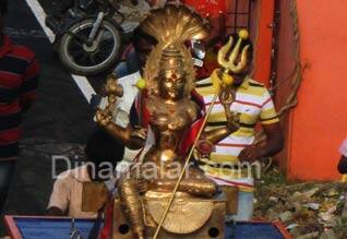 காஞ்சிபுரம்: திருக்காலிமேடு முத்துமாரி அம்மன் கோவிலில், புதிதாக செய்யப்பட்ட உற்சவ மூர்த்திக்கு கரிநாள் உற்சவம் நடைபெற்றது. காஞ்சிபுரம் அடுத்த திருக்காலிமேடு பகுதியில் முத்துமாரி அம்மன் கோவில் அமைந்துள்ளது. இங்கு, அப்பகுதி பொதுமக்களால் புதிதாக முத்துமாரி அம்மன் உற்சவ சிலை அமைக்கப்பட்டுள்ளது. கடந்த 48 நாட்களாக மண்டல பூஜையில் இருந்த உற்சவருக்கு காலை 7:30 மணிக்கு, கரிநாள் உற்சவம் நடைபெற்றது. இதில், உற்சவர் முத்துமாரி அம்மன் தெருக்களில் வீதியுலா வந்தார். அப்பகுதி பெண்கள், அம்மனுக்கு ஆர்த்தி எடுத்து வரவெற்றனர். முன்னாதாக, கோவிலில் காலை 8:30 மணிக்கு, வேத விர்ப்பண்ணர்களால் கணபதி ஹோமம் நடைபெற்றது. இதில், ஏராளமான பக்தர்கள் மற்றும் பொதுமக்கள் கலந்து கொண்டனர்.