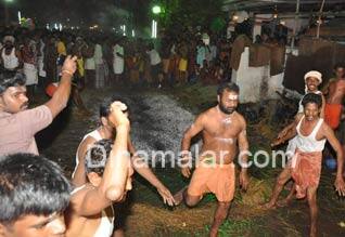 மாலை 3 மணிக்கு சிறப்பு ஹோமம் செய்யப்பட்டது. தொடர்ந்து நாட்டாமை ராஜேந்திரன் தீச்சட்டி எடுத்து வந்து தீமிதிக்கான தீ போடப்பட்டது. இதையடுத்து பச்சை காளி, பவள காளி வீதியுளா நடைபெற்றது. இரவு 11 மணிக்கு கழுமலை ஆற்றிலிருந்து சக்தி கரகம் மற்றும் செடில் காவ டிகள் எடுத்துவரப்பட்டு 12 மணிக்கு தீமிதி உற்சவம் நடைபெற்றது. இதில் ஏ ராளமான பக்தர்கள் கலந்து கொண்டு தீமிதித்ததுடன்,சிறப்பு அலங்காரத்தில் எழுந்தருளிய ஸ்ரீ பத்ர காளியம்மனை தரிசனம் செய்தனர்.