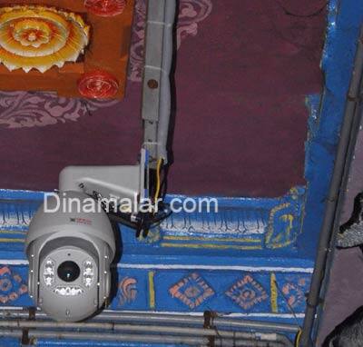 ராமேஸ்வரம்: ராமேஸ்வரம் ராமநாதசுவாமி கோயிலுக்கு பயங்கரவாதிகள் அச்சுறுத்தல் எதிரொலியாக, கோயில் மூன்றாம் பிரகாரத்தில் கண்காணிப்பு சுழற் கேமரா பொருத்தப்பட்டு உள்ளது. ராமேஸ்வரம் கோயிலுக்கு பயங்கரவாதிகள் அச்சுறுத்தல் காரணமாக, கடந்த சில மாதங்கள் முன்பு, கோயில் நான்கு ரதவீதிகளில் வாகனம், கோயிலுக்குள் மொபைல், கேமரா கொண்டு செல்ல போலீசார், தடை விதித்தனர். இதனைதொடர்ந்து சுவாமி, அம்மன் சன்னதி, முதல் பிரகாரத்தில் கண்காணிப்பு கேமரா, கிழக்கு, மேற்கு நுழைவு வாசலில் வெடிகுண்டு கண்டறியும் "மெட்டல் டிடெக்டர் பிரேம் பொருத்தி, பக்தர்கள் தீவிர சோதனைக்கு பிறகே அனுமதிக்கப்பட்டனர். இந்நிலையில், பாதுகாப்பை மேலும் பலப்படுத்த, கோயில் 3ம் பிரகாரம், சேதுபதி மண்டபத்தில் ரூ. 20 லட்சத்தில் 4 சுழற் கண்காணிப்பு கேமரா பொருத்தப்பட்டு உள்ளது. இதன் மூலம் மூன்றாம் பிரகாரம், மேற்கு, கிழக்கு வாசலில் நுழையும் பக்தர்களை கண்காணிக்க முடியும் என, கோயில் பணியாளர்கள் தெரிவித்தனர்.